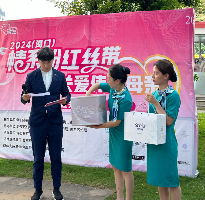 佰曼药业公司有幸参加了海口市妇女联合会、海口市慈善总会组织的慈善活动,公司旗下品牌舒卫康通过携手“粉红关爱”构筑爱心桥梁,为两癌贫困妈妈送去生活所需的物品。
